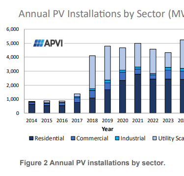 The residential sector’s strength reflects the success of the Small-scale Renewable Energy Scheme (SRES), which creates trading certificates that can be redeemed as upfront capital subsidies for systems up to 100kW.